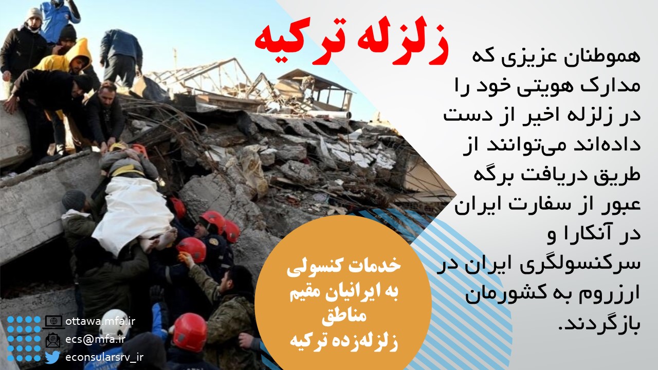 خدمات کنسولی به ایرانیان مناطق زلزله‌زده ترکیه