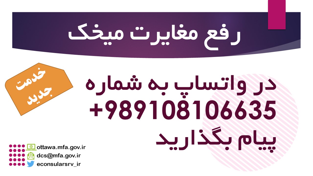 ایرانیان خارج از کشور در صورت مواجه شدن با پیغام خطای «رفع مغایرت اطلاعات ثبت احوال در سامانه میخک» با شماره واتساپ 989108106635 تماس بگیرند تا در اولین فرصت مغایرت برطرف گردد.